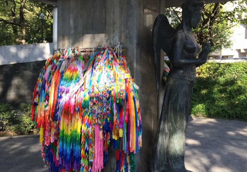 The museum contains photographs of Sadako, and alongside her story is a display of some of the origami cranes that she folded. A statue of Sadako at the park is inscribed, “This is our cry. This is our prayer. Peace in the world.”